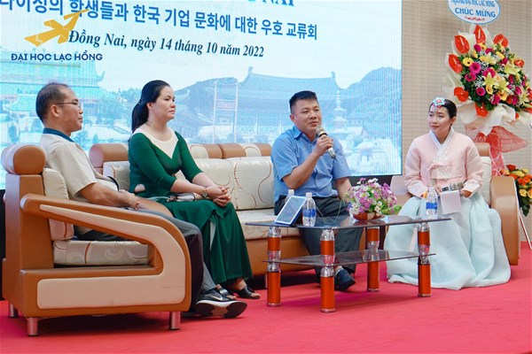 Ngày 14 tháng 10 năm 2022, Hội Hữu nghị Việt Nam - Hàn Quốc tỉnh Đồng Nai đã kết hợp cùng Chi hội Hữu nghị Việt Nam - Hàn Quốc trường ĐH Lạc Hồng tổ chức chương trình giao lưu, trao đổi về văn hoá doanh nghiệp Hàn Quốc với sinh viên Đồng Nai.