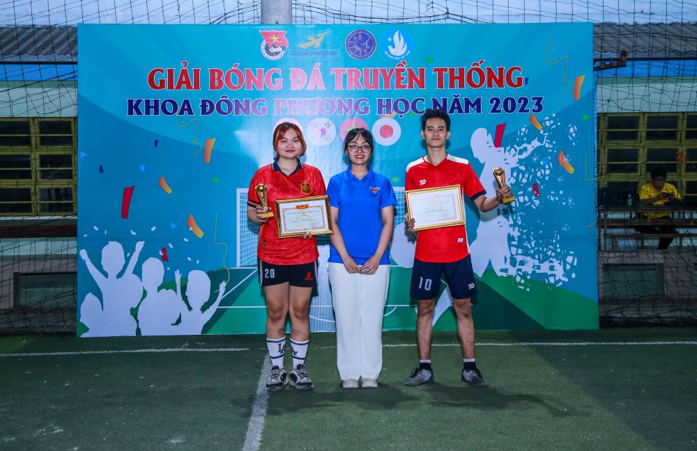 Giải bóng đá sinh viên Khoa Đông Phương học năm 2023 đã thành công tốt đẹp, các cầu thủ đã thể hiện tinh thần thi đấu hết mình và luôn nêu cao tinh thần đoàn kết đồng đội để cống hiến cho khán giả những trận đấu đẹp mắt, sôi nổi và đầy hào hứng.