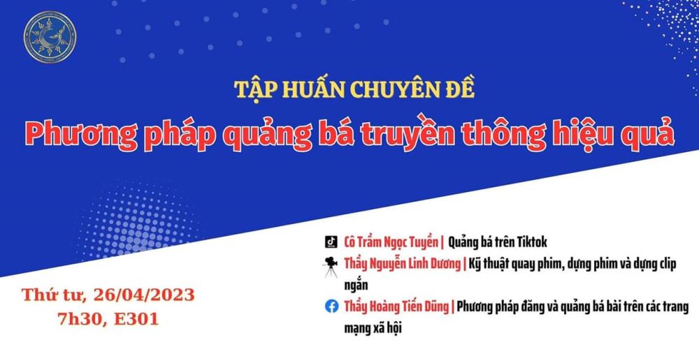 Với mục đích tăng cường khả năng quảng bá thông tin lên các trang mạng xã hội, sáng ngày 26/04/2023, Khoa Đông Phương học tổ chức Buổi Tập huấn chuyên đề "Phương pháp Quảng bá Truyền thông hiệu quả" miễn phí dành cho Thực tập sinh của Khoa.