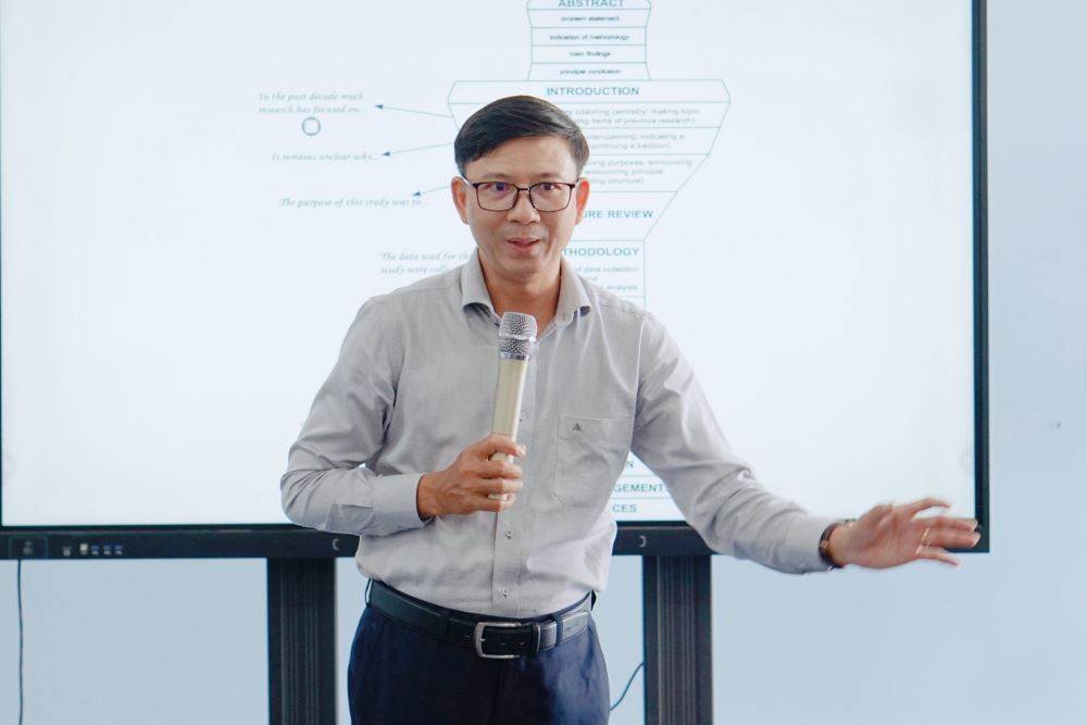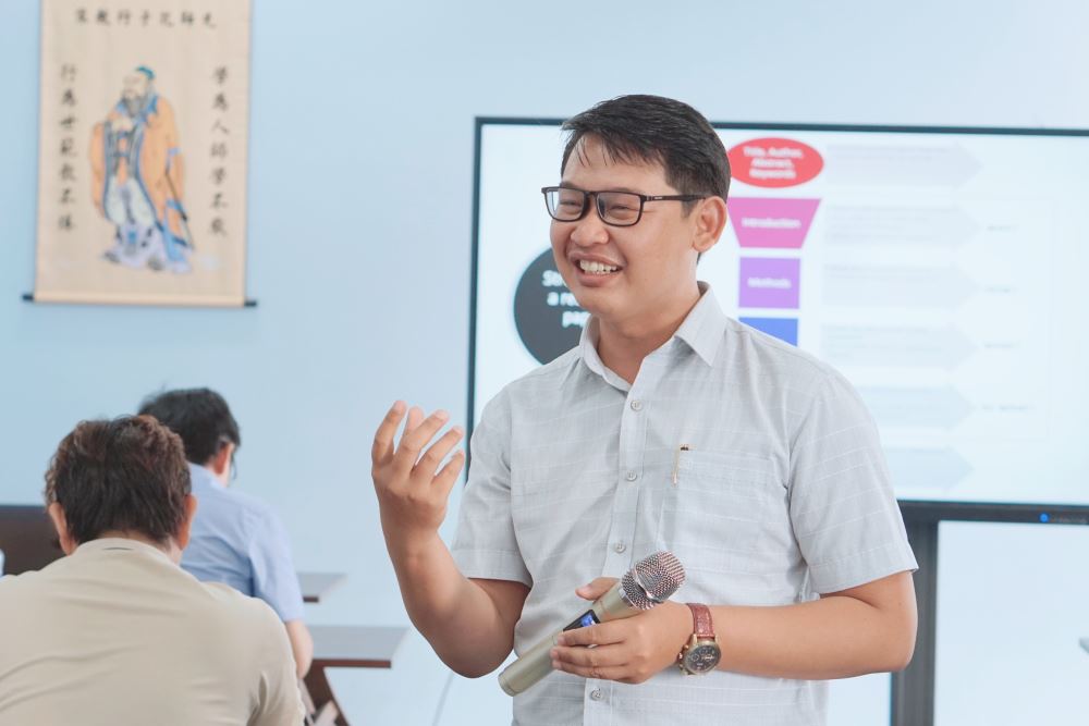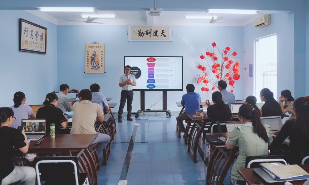 Nhằm nâng cao năng lực nghiên cứu khoa học cho tập thể sư phạm Khoa Đông phương học, sáng ngày 30/6/2023, các giảng viên trong Khoa đã được tập huấn về “Cấu trúc và phương pháp thực hiện bài báo khoa học theo chuẩn quốc tế” với hai chuyên gia trong lĩnh vực này là TS. Quảng Đại Tuyên và TS. Nguyễn Văn Hoàng. Bên cạnh đó, tập thể sư phạm Khoa còn tiếp đón TS. Nguyễn Thanh Sơn - Giám đốc Trung tâm Nghiên cứu Khoa học và Ứng dụng - Đại học Lạc Hồng và TS. Lê Phương Long cũng đang công tác tại Trung tâm cùng tham gia để khích lệ tinh thần học hỏi của giảng viên Khoa.