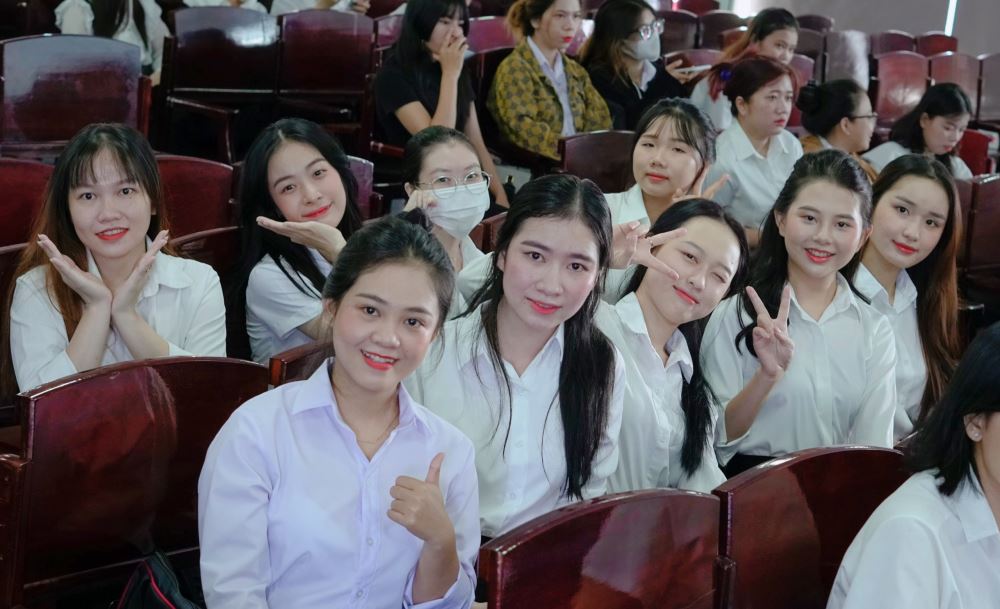 Các bạn sinh viên hào hứng trước buổi báo cáo