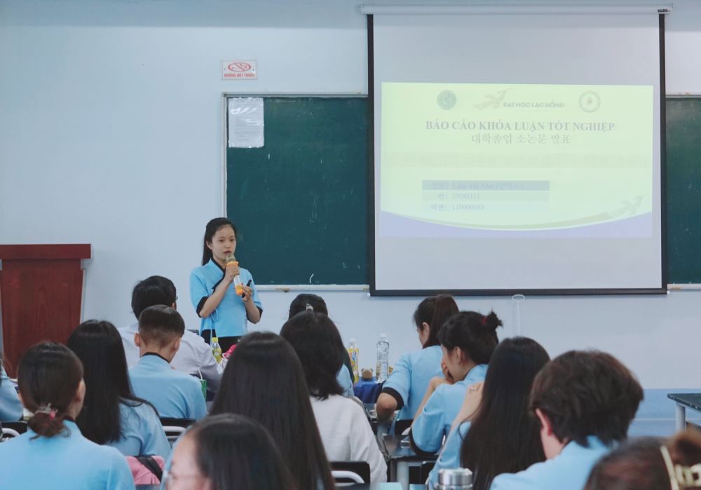 Sinh viên ngành Hàn Quốc học đang báo cáo
