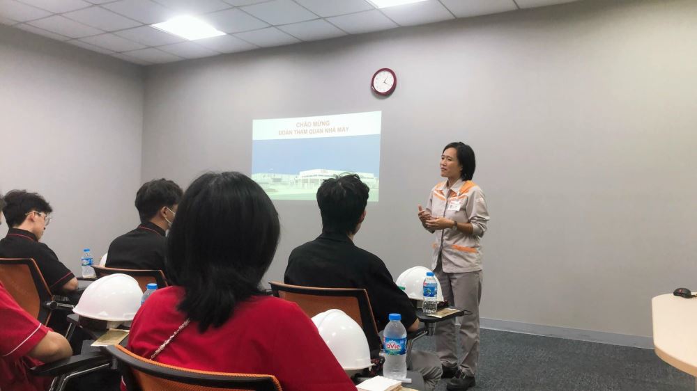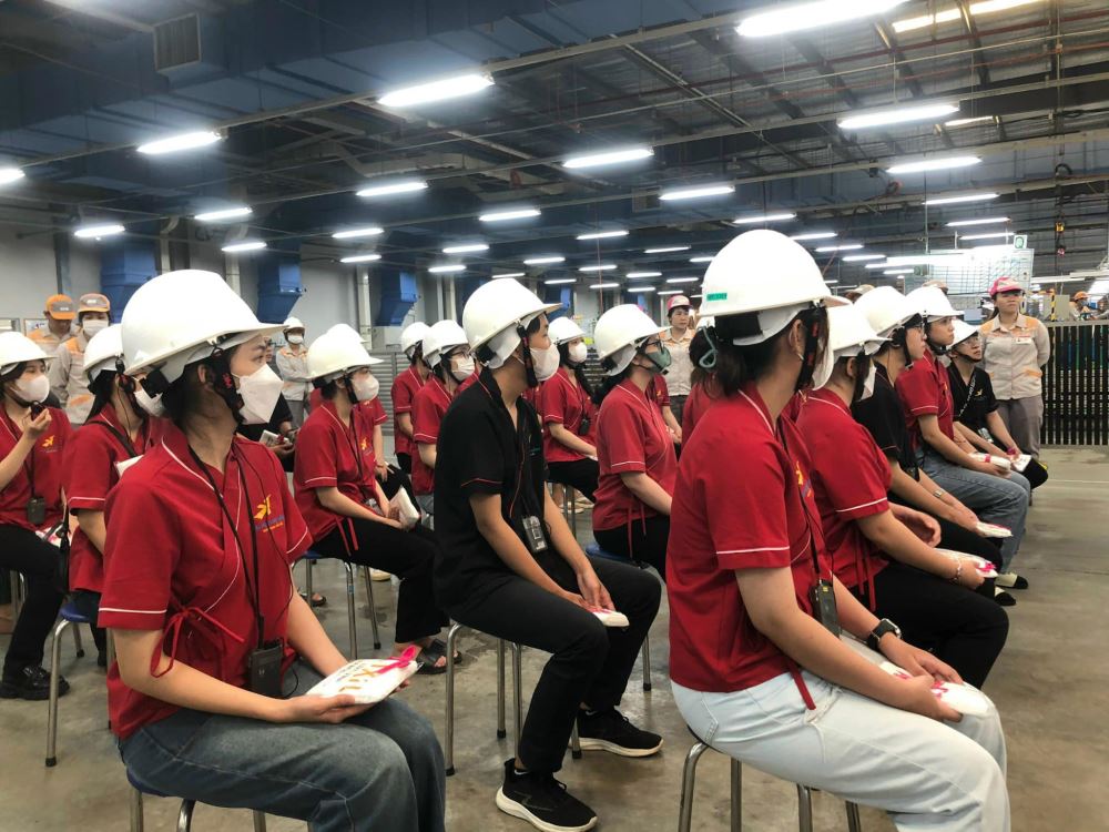 Sinh viên ngành Nhật Bản học lắng nghe hướng dẫn ngay trong nhà máy