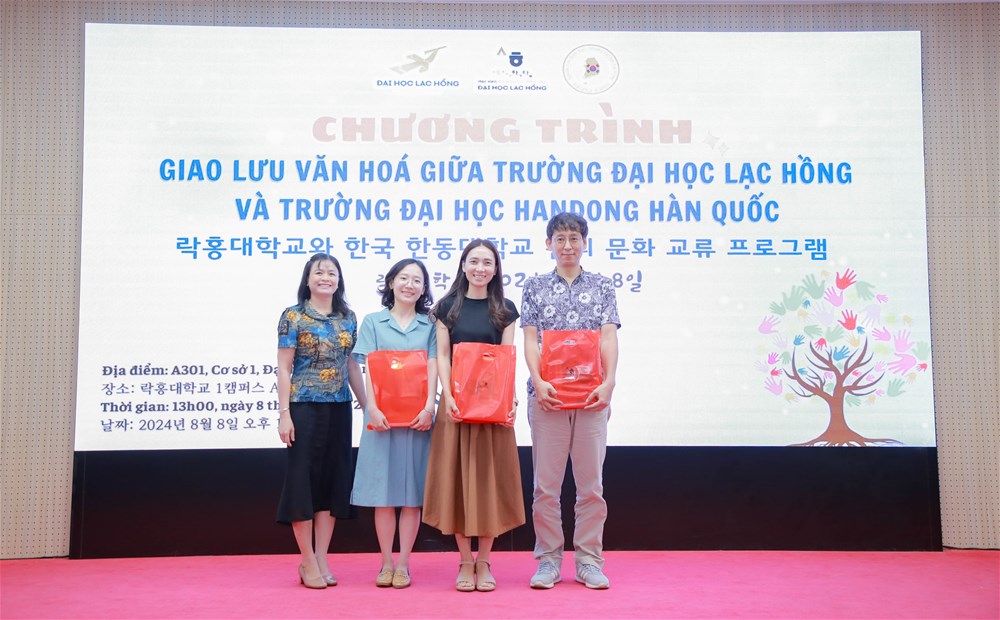 Vào ngày 8/8/2024, tại Hội trường A301, Cơ sở 1, Trường Đại học Lạc Hồng đã diễn ra buổi Tổng kết Chương trình giao lưu văn hoá giữa Sinh viên Trường Đại học Lạc Hồng và Trường Đại học Handong Global do Học viện King Sejong Biên Hoà phối hợp cùng Ngành Hàn Quốc học tổ chức