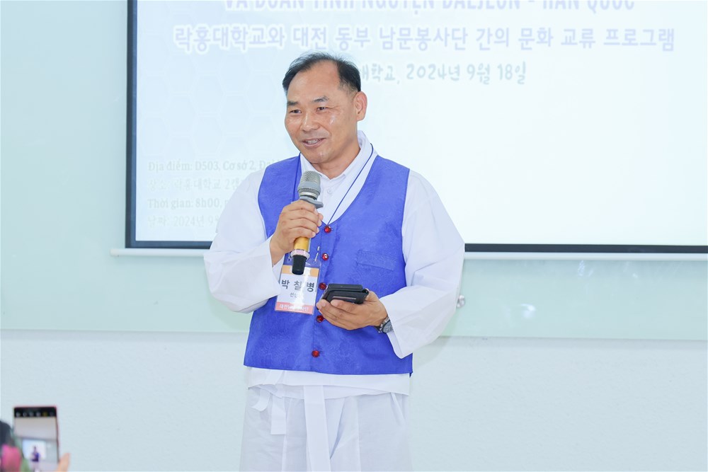 Đại diện Đoàn Tình nguyện tỉnh Daejeon, Hàn Quốc phát biểu tại chương trình
