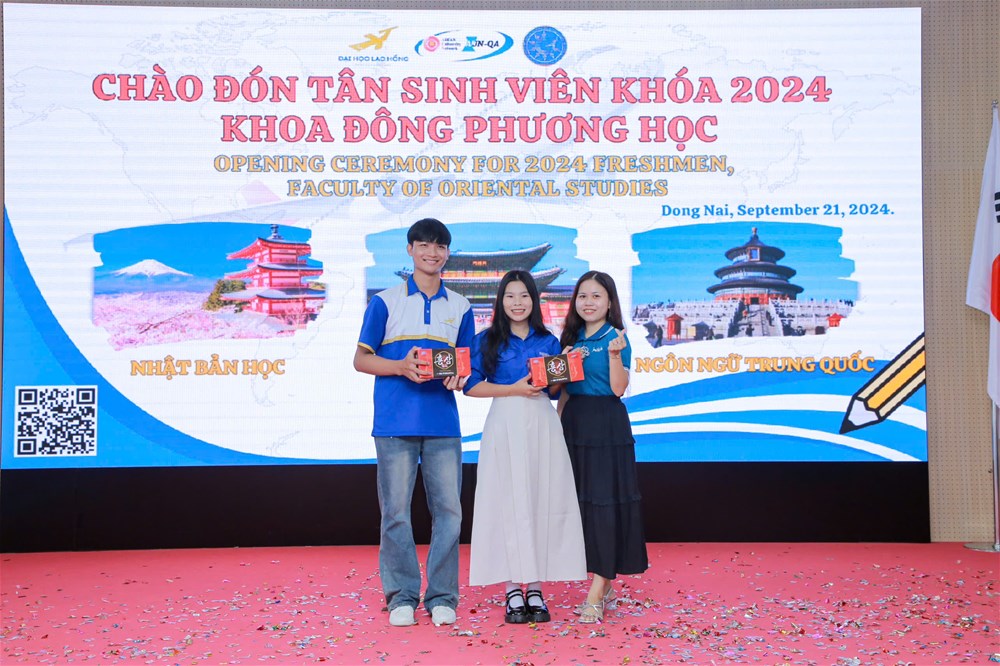 Sáng 21/9/2024, Khoa Đông phương học, Trường Đại học Lạc Hồng, đã tưng bừng tổ chức lễ chào đón hơn 350 tân sinh viên khóa 2024 tại cơ sở 3. Sự kiện có sự tham gia của các đại biểu uy tín từ Hội Hữu nghị Việt Nam - Hàn Quốc, Việt Nam - Nhật Bản và Việt Nam - Trung Quốc tỉnh Đồng Nai, cùng các giảng viên trong khoa.