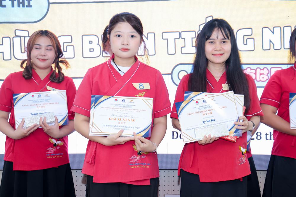 Đặc biệt, trong đó 2 bạn sinh viên ưu tú đã đạt được giải thưởng là một chuyến du lịch học tập 7 ngày tại xứ sở mặt trời mọc. Điều này không chỉ là một phần thưởng cá nhân mà còn là nguồn động viên để tiếp tục phấn đấu và vươn lên cao hơn trong quá trình tìm hiểu và học tập về đất nước, con người Nhật Bản.