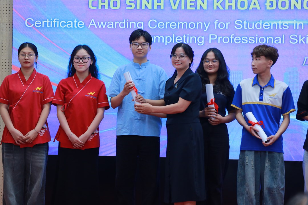 Hơn 93 sinh viên đã hoàn thành xuất sắc và nhận giấy chứng nhận nghiệp vụ trong Lễ trao Giấy chứng nhận hoàn thành các khóa học nghiệp vụ cho sinh viên Khoa Đông phương học vào ngày 03/12/2025 – sở hữu những kỹ năng “vàng” giúp sinh viên tự tin ghi dấu ấn ngay từ khi học tập và cho đến khi ra trường làm việc tại doanh nghiệp.
