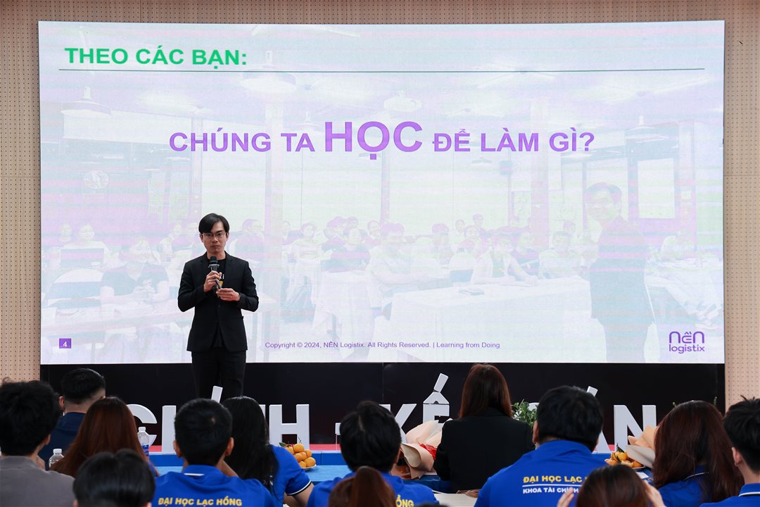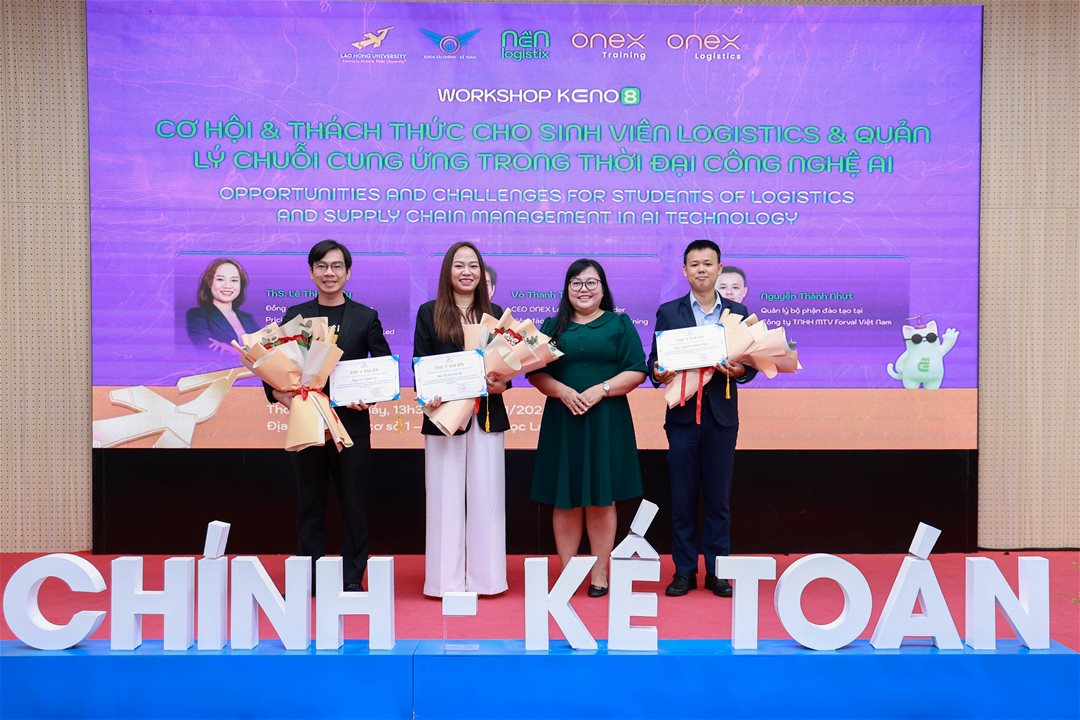 Chiều ngày 15/11/2025, tại Hội trường A301, Khoa Tài chính – Kế toán, Trường Đại học Lạc Hồng đã tổ chức thành công Workshop KENo.8 với chủ đề “Cơ hội và thách thức cho sinh viên Logistics và Quản lý chuỗi cung ứng trong công nghệ A.I”. Sự kiện thu hút sự tham dự đông đảo của sinh viên các khóa cùng các giảng viên và chuyên gia trong lĩnh vực logistics, tạo nên một không gian học thuật cởi mở, sinh động và giàu giá trị thực tiễn.