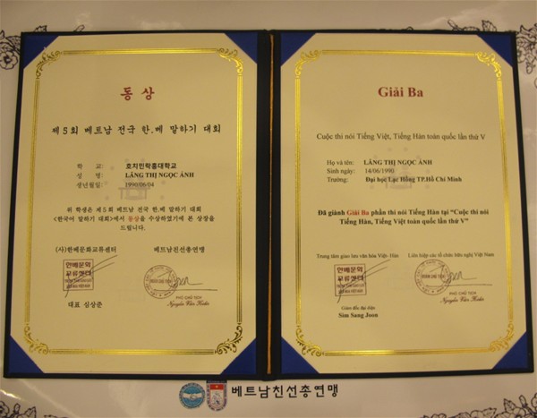 Sinh viên Khoa Đông Phương đạt giải 3 cuộc thi Nói tiếng Hàn toàn quốc