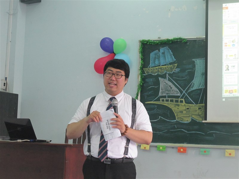 Để buổi sinh hoạt Câu lạc bộ trở thành cầu nối giúp sinh viên trao đổi, giao tiếp với nhau về ngôn ngữ, văn hóa, phương pháp học tập… bằng chính ngôn ngữ mình đã học, Ban tổ chức Câu lạc bộ tiếng Hàn đã mời Thầy Kim Kwan Sik - Giáo viên dạy tiếng Hàn tại trung tâm Đa văn hóa Hàn Quốc về sinh hoạt với sinh viên ngành Hàn Quốc học.