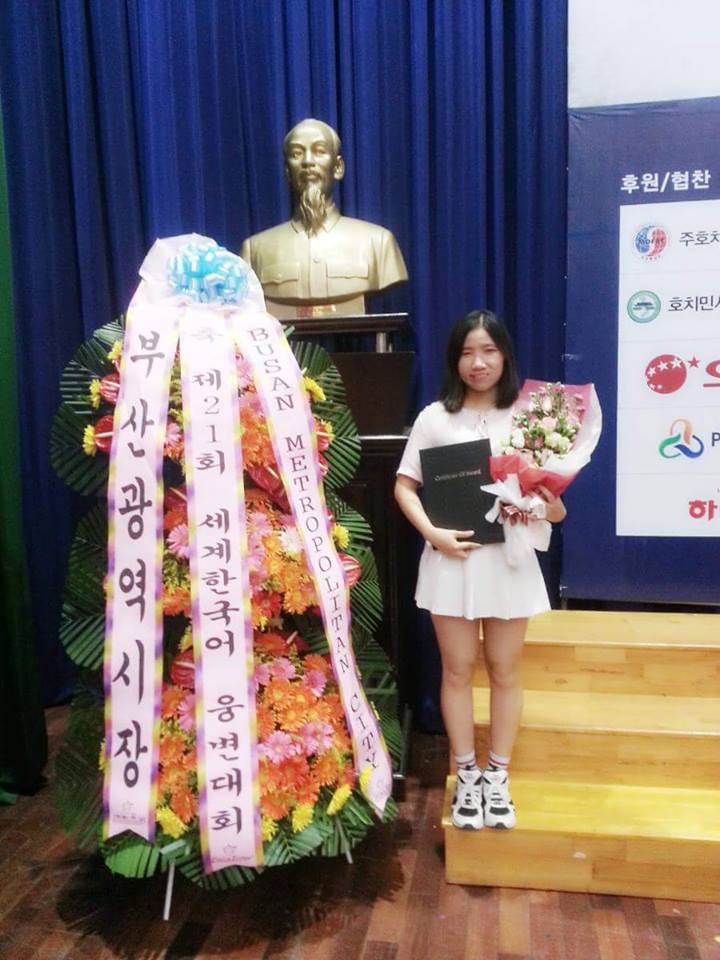 Đến với hội thi Hùng biện tiếng Hàn thế giới tổ chức ở Việt Nam lần này, ngành Hàn Quốc học trường đại học Lạc Hồng đã tổ chức cuộc thi sát hạch giữa các sinh viên toàn ngành nhằm tuyển chọn ra “những bông hoa ưu tú” trong “vườn hoa” ngành Hàn Quốc học tham dự cuộc thi. Với bản lĩnh và phong cách diễn đạt tự nhiên phần hùng biện, sinh viên Lê Thị Minh Phúc ( lớp 13DH111) đã vinh dự đạt giải 3 chung cuộc hội thi Hùng biện tiếng Hàn thế giới tổ chức tại Việt Nam. Đây là phần thưởng xứng đáng ghi nhận sự nỗ lực trong quá trình học tập và trao dồi kiến thức của bản thân em. Đồng thời cũng là niềm vui, niềm vinh dự cho ngành Hàn Quốc học, Khoa Đông phương, Đại học Lạc Hồng, đánh dấu sự phát triển không ngừng trong quá trình dạy và học của Thầy trò ngành Hàn Quốc học.
