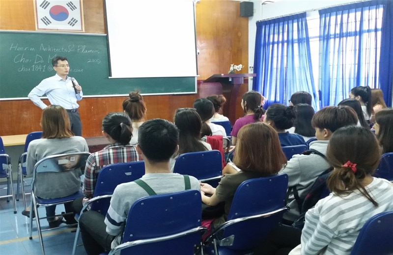 Trong buổi giao lưu với các sinh viên năm 3 và năm 4 ngành Hàn Quốc học, ngoài việc giới thiệu về những thành tựu nổi bật của công ty Heerim, ông Choi Do Moon cũng chia sẻ kinh nghiệm làm việc, công tác thông dịch và dịch thuật, những chế độ ưu đãi khi làm việc tại các công ty lớn Hàn Quốc.