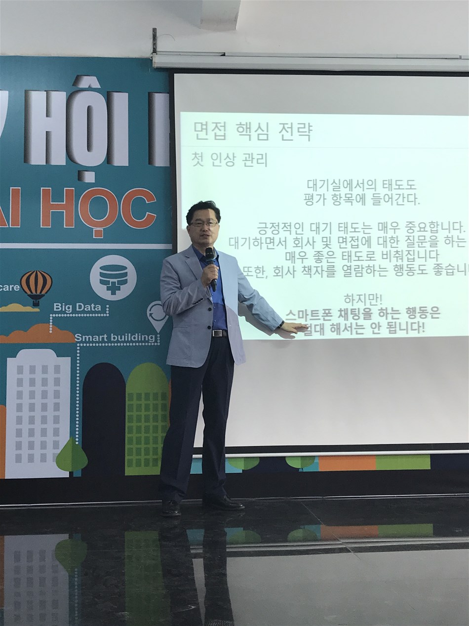 Trong suốt quá trình diễn ra CLB, Giáo sư Kim đã chia sẻ kinh nghiệm và lưu ý những điểm cần thiết khi phỏng vấn tiếng Hàn tại các công ty Hàn Quốc như:
