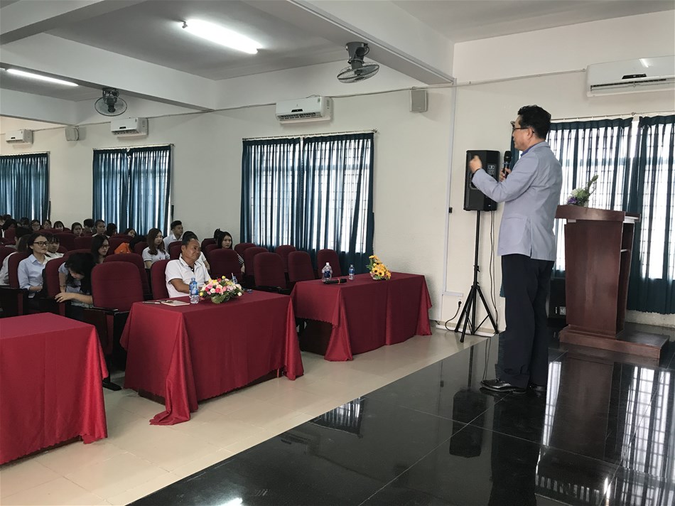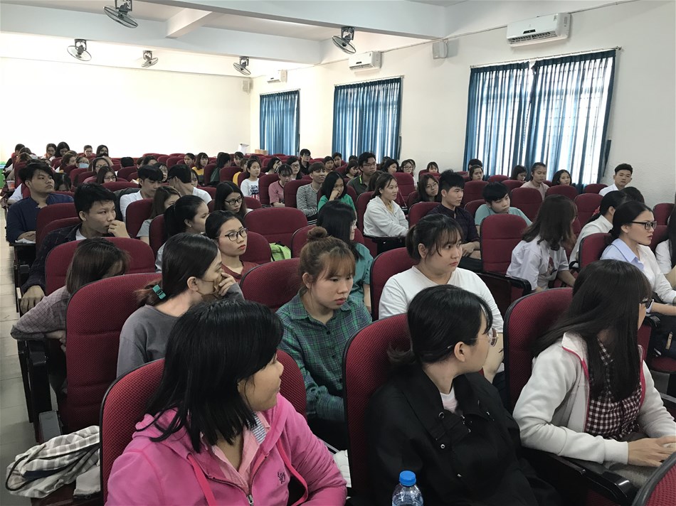 Giáo sư Kim khuyến khích các bạn sinh viên năm 4 đặt câu hỏi, nêu lên những thắc mắc của bản thân mình để cùng mọi người trao đổi, chia sẻ với nhau.