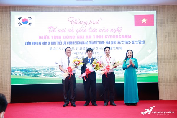Sáng 23-5, tại Trường đại học Lạc Hồng đã diễn ra Chương trình giao lưu văn nghệ giữa tỉnh Đồng Nai và tỉnh Gyeongnam (Hàn Quốc) hướng đến chào mừng kỷ niệm 30 năm thiết lập quan hệ ngoại giao giữ hai nước Việt Nam và Hàn Quốc (22/12/1992 – 22/12/2022). Chương trình do Sở Văn hóa - thể thao và du lịch phối hợp với Văn phòng đại diện tỉnh Gyeongnam tại TP.HCM tổ chức.
