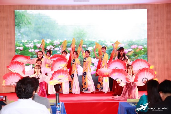 Sinh viên ngành Hàn Quốc học Trường Đại học Lạc Hồng biểu diễn văn nghệ với tiết mục múa Việt- Hàn