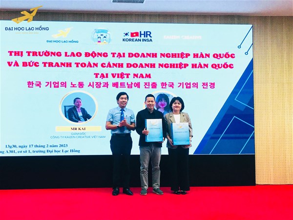 🌸 Vào lúc 13h00 ngày 17/02/2023 tại Hội trường A301, cơ sở 1, Trường Đại học Lạc Hồng. Ngành Hàn Quốc học đã tổ chức buổi giao lưu chuyên đề “Thị trường lao động tại doanh nghiệp Hàn Quốc và bức tranh toàn cảnh doanh nghiệp Hàn Quốc tại Việt Nam”.