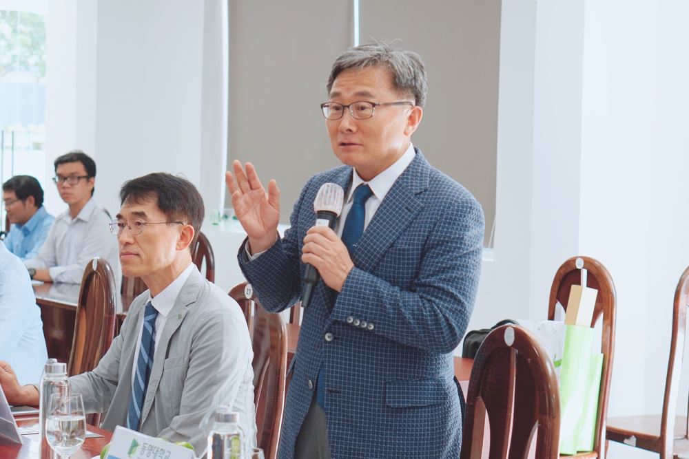 Giáo sư Chun Ho Hwan - Hiệu trưởng Đại học Tongmyong phát biểu về triển vọng hợp tác giữa 2 trường
