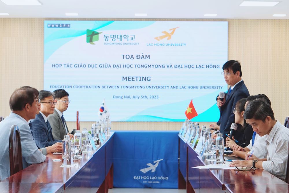 Vào ngày 5/7/2023, đoàn lãnh đạo Trường Đại học Tongmyong - Hàn Quốc đã đến Đại học Lạc Hồng để bàn bạc sâu hơn về chương trình hợp tác quốc tế. Đại diện Đại học Lạc Hồng đón tiếp đối tác có TS. Lâm Thành Hiển - Hiệu trưởng Nhà trường; PGS.TS. Nguyễn Thanh Lâm - Phó Hiệu trưởng, TS. Nguyễn Hữu Nghị - Trưởng khoa Đông phương học; Th.S Đỗ Thị Thùy - Trưởng ngành Hàn Quốc học.