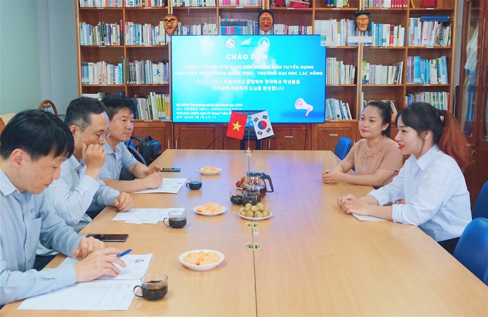 Vào ngày 1/7/2023 vừa qua, Ngài Seok Deok Won - Giám đốc công ty TNHH MTV KJCC cùng Ban Giám đốc công ty đã đến phỏng vấn và tuyển dụng sinh viên Ngành Hàn Quốc học - Trường Đại học Lạc Hồng.