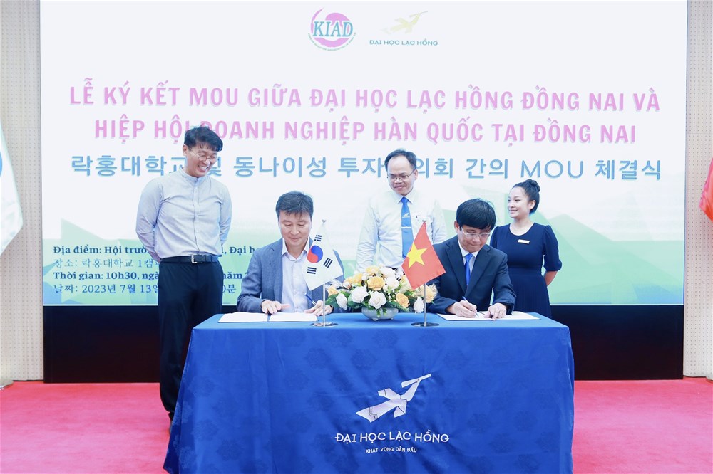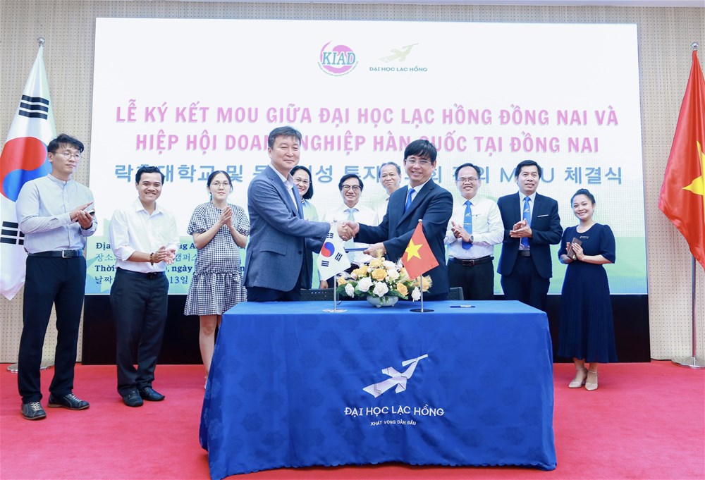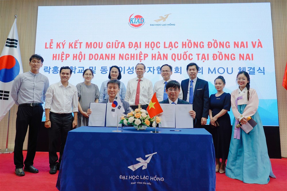 Tại chương trình này TS Lâm Thành Hiển - Hiệu trưởng Trường Đại học Lạc Hồng cùng đại diện ngành Hàn Quốc học đã ký kết biên bản ghi nhớ (MOU) với Hiệp hội doanh nghiệp Hàn Quốc tại Đồng Nai.