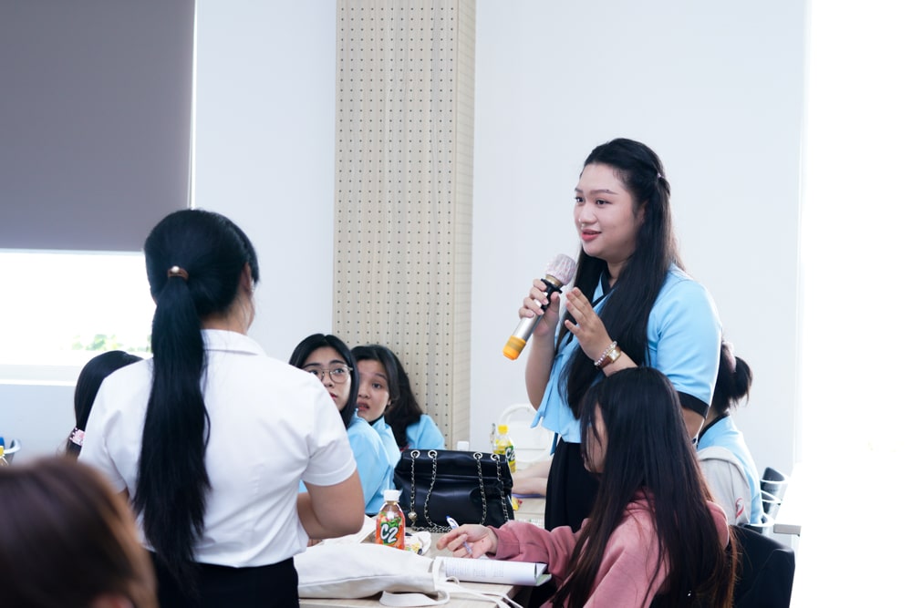 Sinh viên Ngành Hàn Quốc học đặt câu hỏi giao lưu đến khách mời