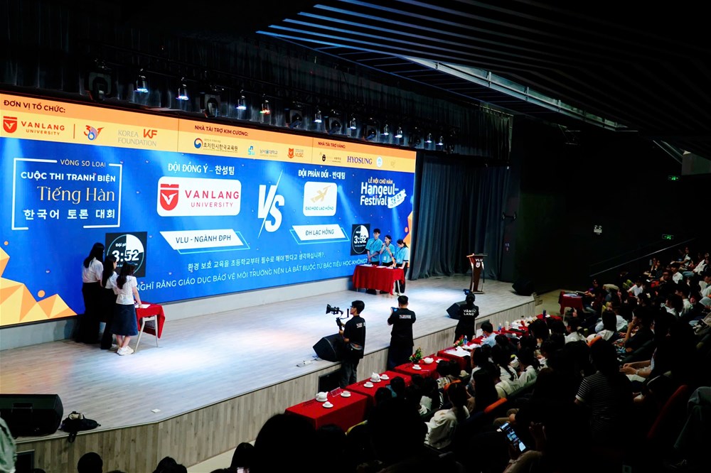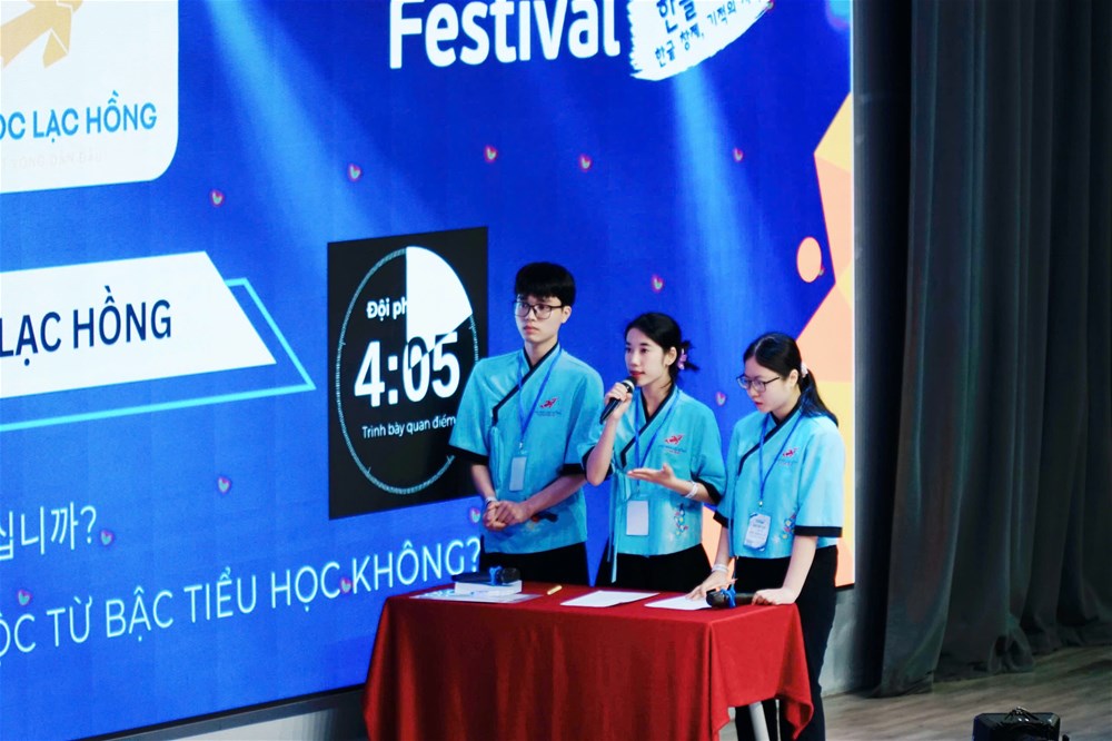Ngày 9/9/2024, tại Trường ĐH Văn Lang, ba bạn sinh viên ưu tú của ngành Hàn Quốc học Trường ĐH Lạc Hồng, gồm Lê Văn Việt, Dương Huỳnh Bảo Trân và Trần Ngọc Hà Vy, đã tham gia Vòng loại Cuộc thi Tranh biện tiếng Hàn - Hangeul Festival 2024. Cuộc thi này không chỉ mang đến cơ hội để các bạn thể hiện khả năng sử dụng tiếng Hàn, kỹ năng tranh biện và tư duy logic mà còn thúc đẩy giao lưu văn hóa và nâng cao hiểu biết về văn hóa Hàn Quốc.