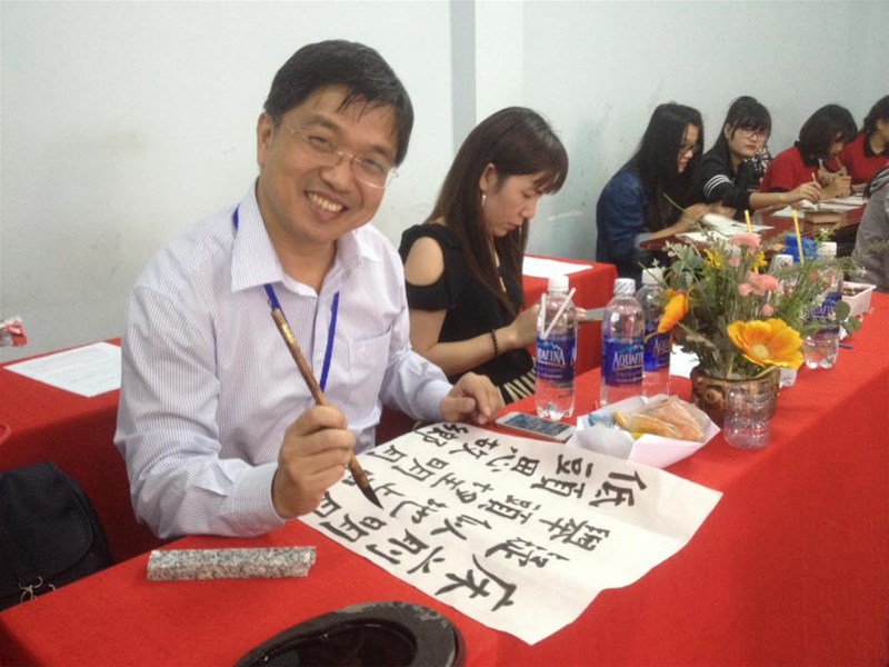 Tiếp sau phần giao lưu, TS Phùng Kim Nga giới thiệu sơ lược về thư pháp Trung Hoa và đưa chủ đề cho sinh viên viết thư pháp. Phần thi này là cũng là sự tổng kết quá trình học thư pháp hơn 3 tháng của sinh viên ngành Trung Quốc học. Qua phần chấm điểm, ban tổ chức đã chọn được 8 bạn viết chữ đẹp nhất để nhận phần thưởng. Trong đó, sinh viên Nông Quốc Phương đã đạt được giải nhất của cuộc thi và nhận được giải thưởng của CLB và đặc biệt được nhận 500.000 đồng tiền thưởng của khách mời. Đây là phần thi vui nhộn và nhận được sự quan tâm chú ý của sinh viên.