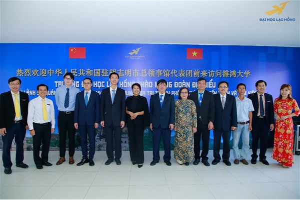 Sáng ngày 24/9/2022, tại Hội trường A301, cơ sở 1 trường Đại học Lạc Hồng đã diễn ra buổi  tiếp đón và làm việc giữa Đoàn đại biểu Tổng Lãnh sự quán Nước Cộng Hoà Nhân Dân Trung Hoa tại TP.HCM và Trường Đại học Lạc Hồng. Dẫn đầu đoàn công tác phía Tổng Lãnh Sự Quán nước Cộng Hòa Nhân Dân Trung Hoa tại TP. Hồ Chí Minh là Phó Tổng Lãnh Sự quán, ông Hách Chí Cương và Chủ nhiệm Văn phòng Giáo dục ông Lục Binh cùng đoàn.