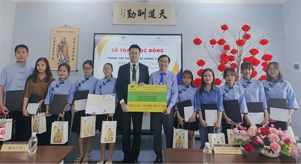 Lễ trao học bổng cho sinh viên ngành Ngôn ngữ Trung Quốc có hoàn cảnh khó khăn vượt khó trong học tập năm 2023