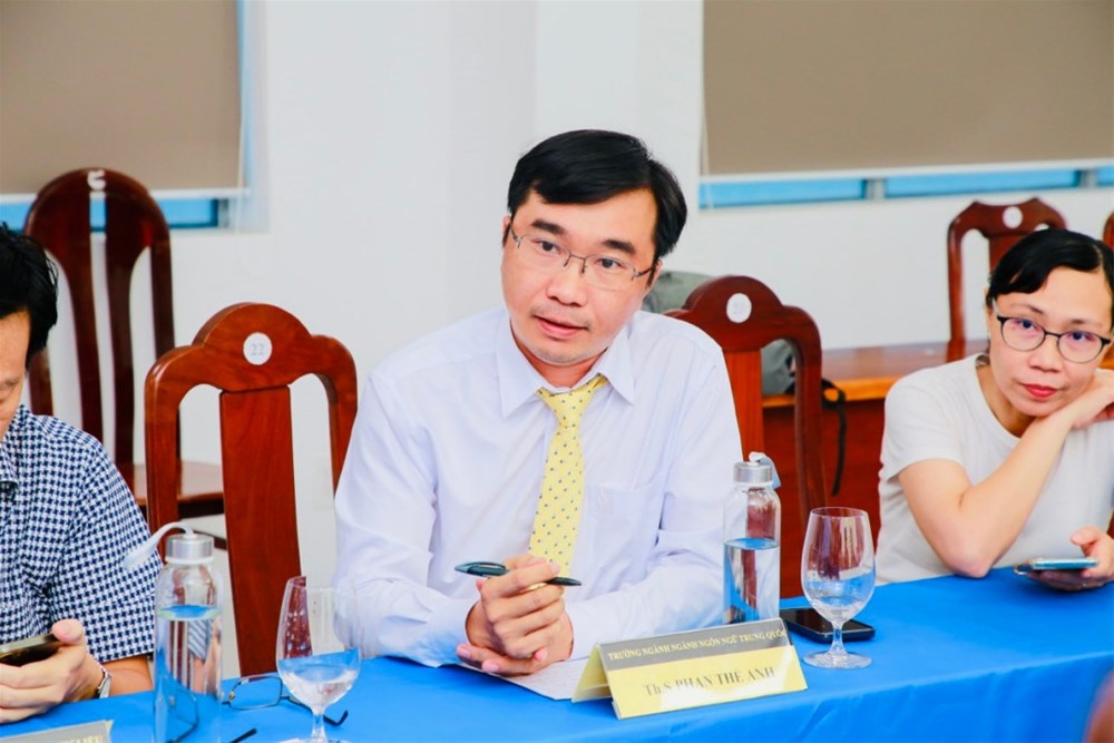 Thầy Phan Thế Anh- Trưởng ngành Ngôn ngữ Trung Quốc phát biểu tại buổi kí kết