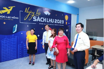 các bên tham quan Thư viện trường Đại học Lạc Hồng
