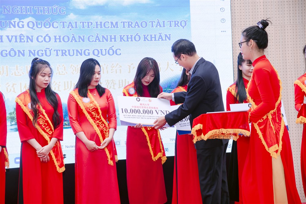 ​ Lãnh sự quán Trung Quốc tại Thành Phố Hồ Chí Minh, ông Lục Binh tiếp xúc và trao học bổng
