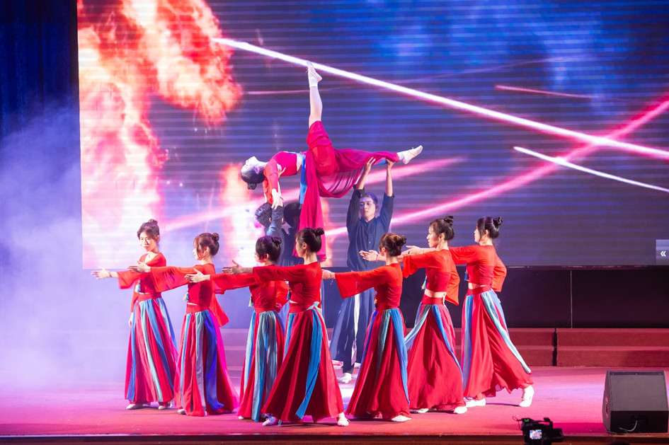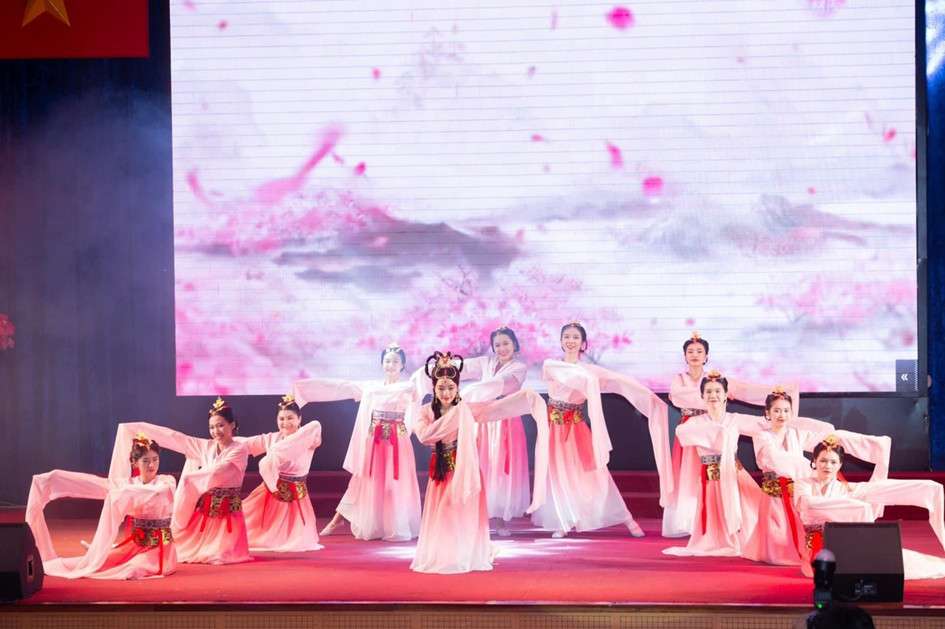 Sinh viên ngành ngôn ngữ Trung Quốc LHU trình diễn tiết mục chào mừng cuộc thi