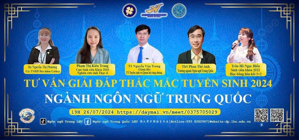 Vào lúc 19h00 ngày 27/7/2024 ngành Ngôn ngữ Trung Quốc đã tổ chức “Buổi online tư vấn và giải đáp thắc mắc tuyển sinh năm 2024.”