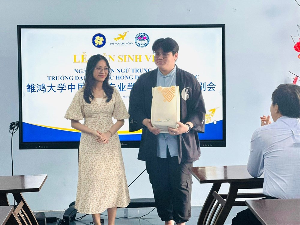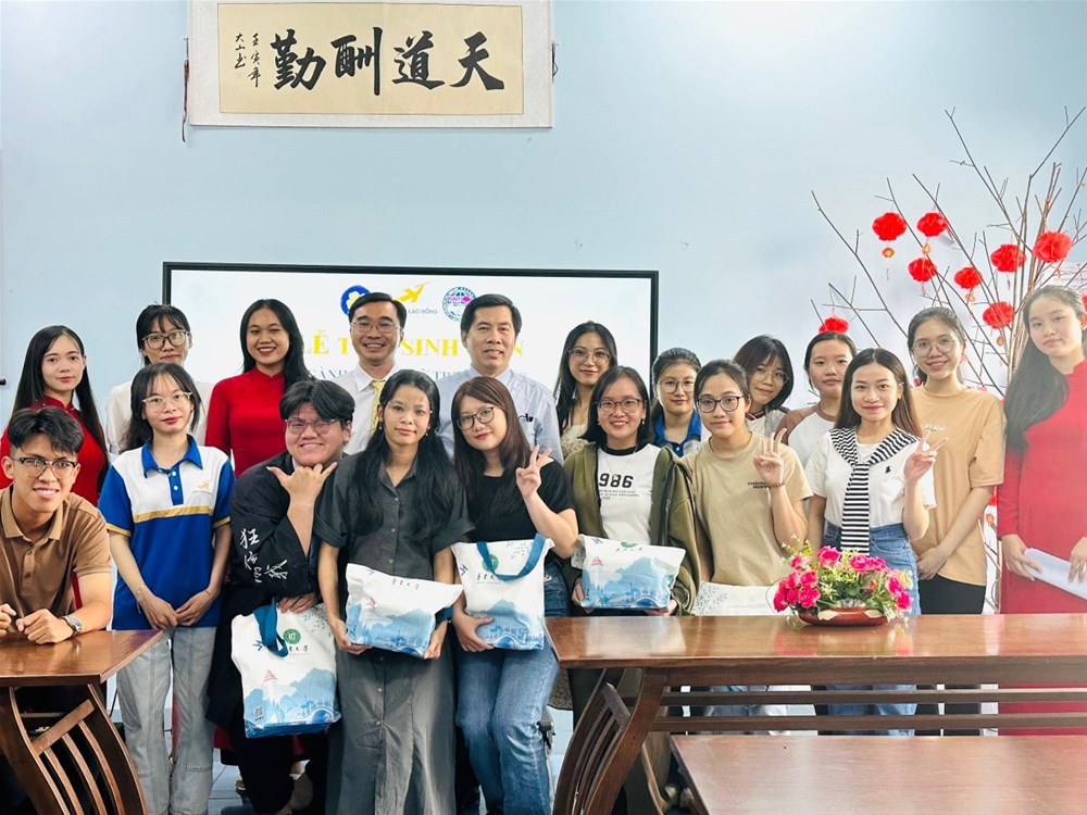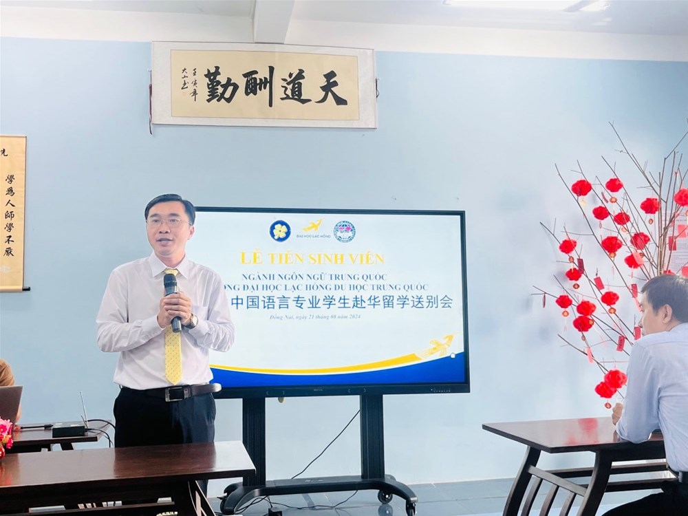 Chiều ngày 21/08/2024 tại phòng học Đa chức năng ngành ngôn ngữ Trung Quốc, Đại học Lạc Hồng tổ chức buổi Lễ tiễn sinh viên Ngành ngôn ngữ Trung Quốc đi du học 3+2 và thạc sĩ học bổng toàn phần chuyên ngành Thạc sĩ Giáo dục Hán ngữ Quốc tế tại Trung Quốc.Tại buổi Lễ có sự tham dự của TS. Nguyễn Hữu Nghị - Trưởng khoa Đông Phương Học, ThS. Phan Thế Anh - Trưởng ngành Ngôn ngữ Trung Quốc, Th.S Trần Phi Hùng – Giảng viên ngành NNTQ, Th.S Nguyễn Thị Lan Hương Giảng viên ngành NNTQ – cùng  sinh viên ngành Ngôn ngữ Trung Quốc.