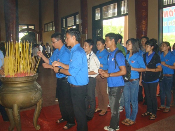 Delegates and volunteers offer incense at Tran Bien Temple of Literature.
