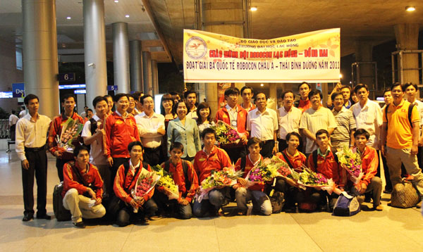 The Robocon team coming back from AUB Asia Pacific Robot Contest held in Thailand was given a warm welcome on August 30 at Tan Son Nhat airport in Ho Chi Minh City with the presence of representatives of Dong Nai province and leaders of Lac Hong University along with Robocon lovers.