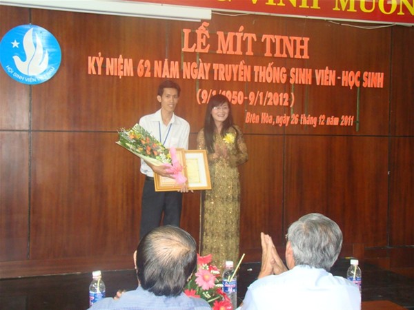 A meeting to celebrate the 62nd year of the Students’ Day was held on December 26 at Lac Hong University. At the meeting, the university Students’ Association awarded “ Sao Thang Gieng” (January Star) prize to Phung Quang Luu – student of Faculty of Electro mechanics and " Sinh Vien 5 Tot" to 61 typical students.