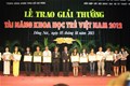 Vietnam Young Science Talents Award 2012 for young lecturers was firstly held with 94 works from 29 universities. Research works with high prizes will be published on prestigious international journals of science.