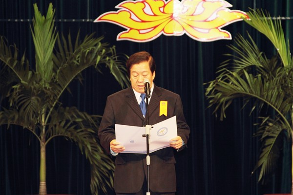 People’s Teacher Dr. Do Huu Tai - Rector of Lac Hong University  delivers an opening speech at the ceremony.