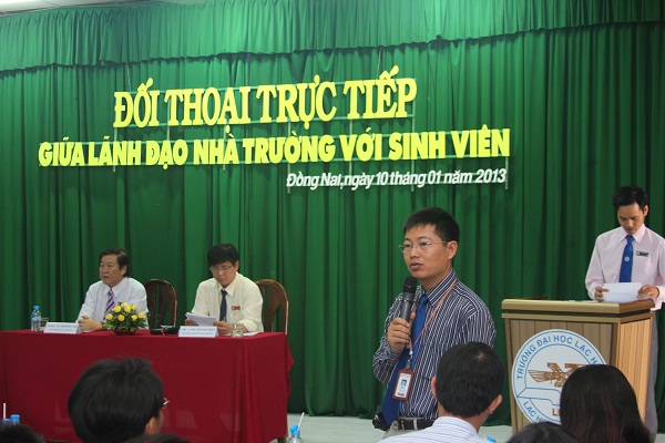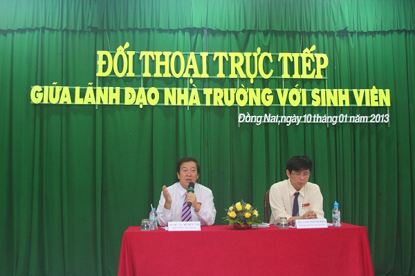 On the morning of January 10, a direct meeting between students and the University Management Board was held at Room A 301 – campus 1 – Lac Hong University. The program was attended by Chairman of the Trustees Board, Rector People’s Teacher Dr. Do Huu Tai, Vice Rectors Dr. Nguyen Van Nam and Lam Thanh Hien, M.A, representatives of offices and faculties and nearly 500 students at all levels.