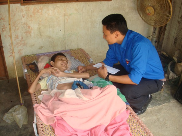 On April 26, LHU's Youth Union – Student Association in association with Dong Nai AO/dioxin Victims’ Association visited and presented gifts to 20 AO/dioxin victims in Cam My and Dinh Quan districts. Each gift included 20 kilos of rice, cooking oil, cakes,... equivalent VND 300,000 and VND 300,000 in cash.
