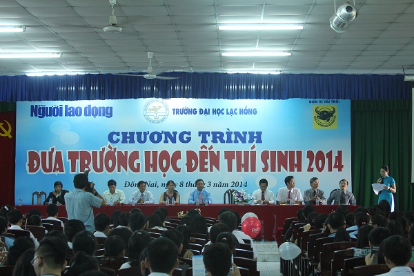 Speaking at the event, Ms. Tran Thu Thuy Vinh representing Laborer Newspaper said "Student Enrollment Day 2014 is held annually and takes place many provinces. In 2014, the program will go through 9 provinces including Dong Nai. The event today receives the great support from Lac Hong University, Binh Dien Fertilizer Joint Stock Company and the Consultancy Board. With experienced and strong advisers, high school students will be brave to express their worries about the coming entrance exam".