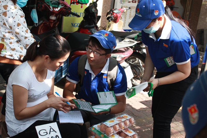 Voluntary youth union members introduced environmentally friendly bags to sellers in Bien Hoa market.
