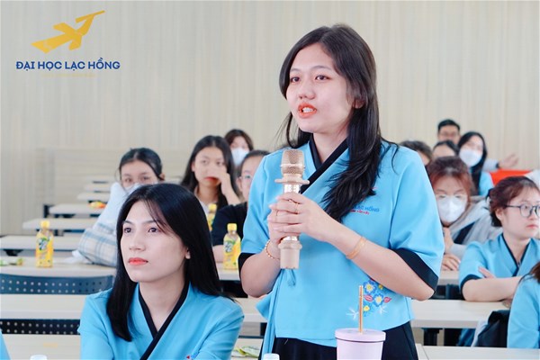 Mr. Hoang Thanh Tung and Ms. Nguyen Thi Van Anh exchanged and answered students' questions