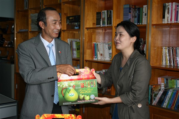 Tran Huu Yen Loan, MA presenting souvenirs to the guests