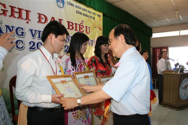 Addressing the conference, Meritorious Teacher Nguyen Minh Dang on behalf of the MOET and the National Education Union of Vietnam highly appreciated the open atmosphere with the cooperative and responsible spirit of all of the school staff  in order to promote traditional achievements and also to successfully implement tasks of the new school year.
