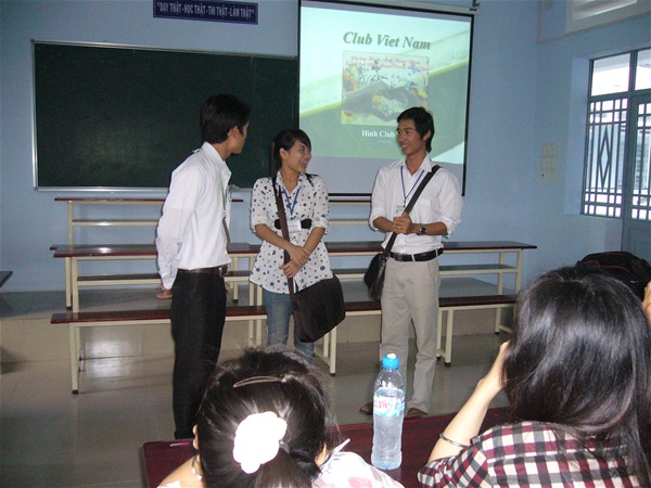 Trong không khí thân mật, vui tươi, các bạn sinh viên khóa 09 đã giới thiệu sinh động về những kiến thức, kỹ năng của nghề hướng dẫn viên du lịch thông qua cách trình bày tiểu phẩm, trình chiếu powerpoint, trò chơi…